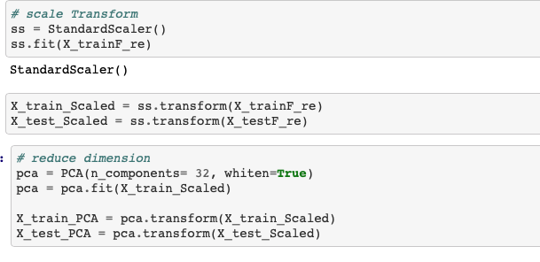 그 이후에 조정된 특성들을 주성분 분석을 하여서 길이가 32로 된 Vector가 반환되도록 합니다.