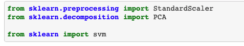 이제 여기서 주성분 분석이 된 훈련 데이터로 SVM을 학습시키고 테스트 데이터에 대한 분류 결과를 구합니다.