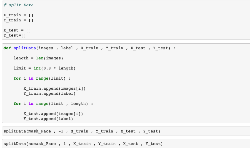 SVM을 이용할 것이기 때문에 마스크를 착요한 사진은 1 , 마스크를 착용하지 않은 사진은 -1로 label을 설정합니다.