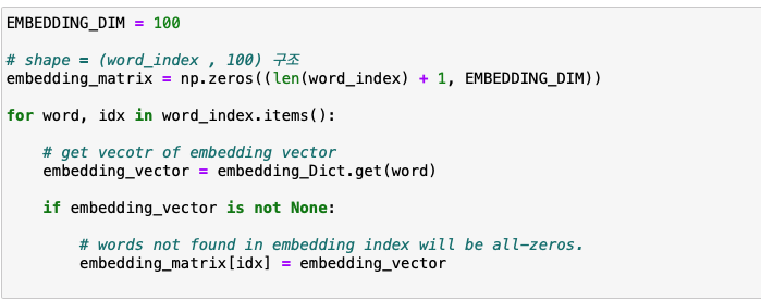 이제 GloVe Embedding Layer를 만들어 보겠습니다.