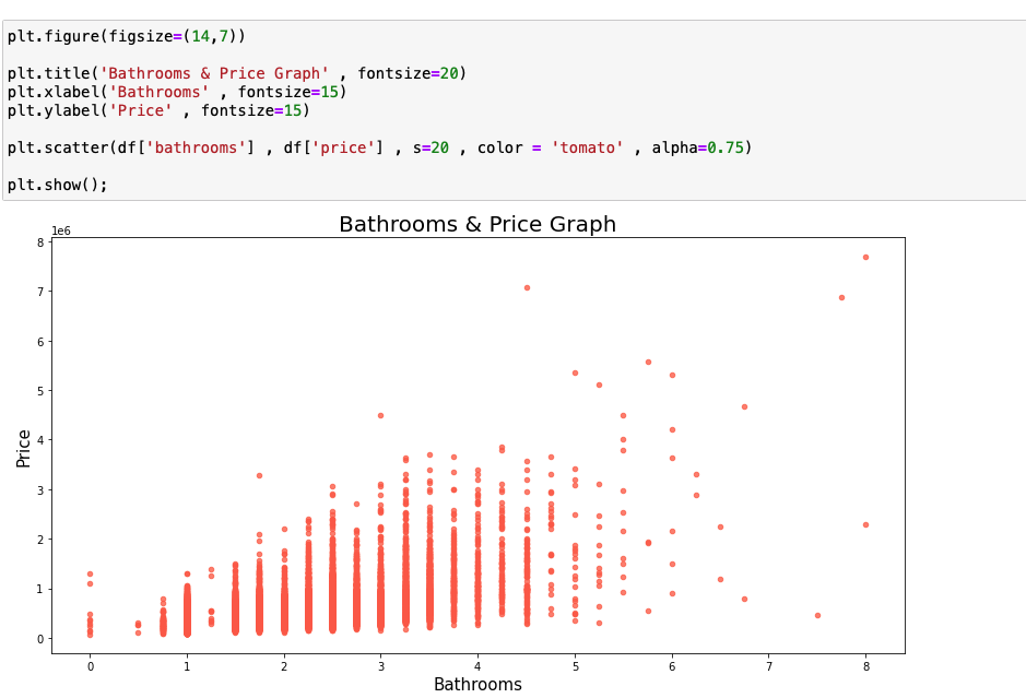 Bathrooms와 집 값에 대한 연관성을 분서해보고자 합니다.