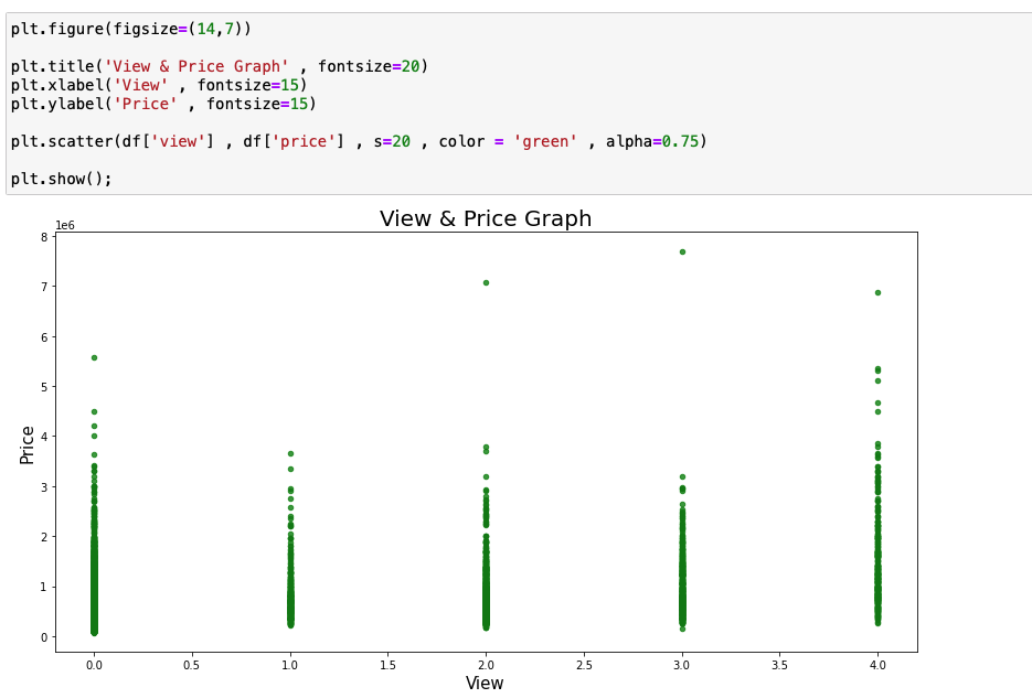 View가 4일 때는 다른 값일 때 보다 비싼 집 값들이 많이 있다는 것을 확인할 수 있습니다.