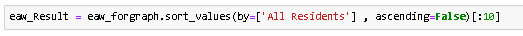 이제 잉글랜드와 웨일즈 중에서 인구수가 높은 10개의 지역구에서 찬성 및 반대의 투표 수를 확인해보겠습니다.