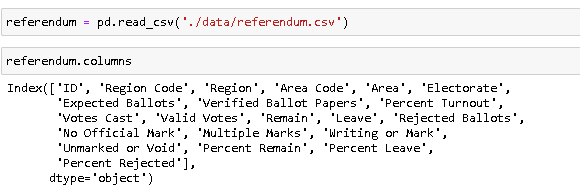 위의 Brexit 투표 결과에 대한 데이터는 아래에서 확인할 수 있듯이