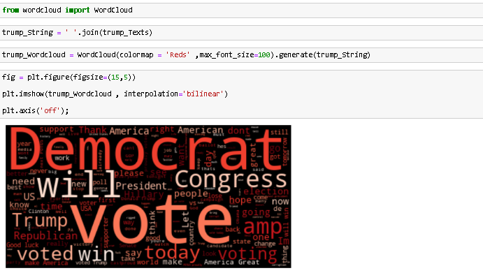 위의 함수를 이용해서 @realDonaldTrump 가 언급된 트위터를 전처리하고 Word Cloud를 만들어보겠습니다.