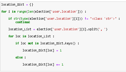 본래 데이터에서 사용자 위치에 대한 정보는 Null 데이터가 많아서 Type을 체크해야 합니다. 그리고 하나의 위치로 정해진 것이 아니라 사용자가 여러 위치를 정해서 트위터를 올릴 수 있기 때문에 나누어서 각각에 대해서 갯수를 셌습니다.