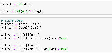이제 위 데이터를 훈련 및 테스트 데이터로 80% 대 20%로 분할해서 진행하겠습니다.
