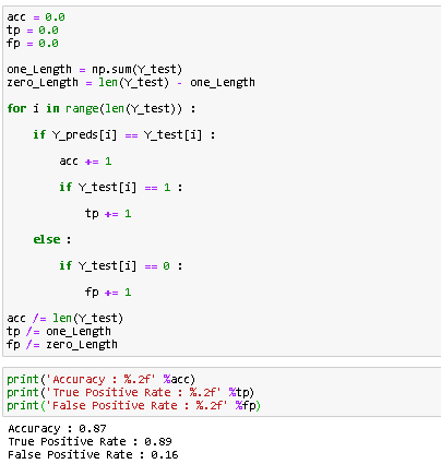 False Postivie Rate는 16%로 실제 심장병이 없는데 심장병이 있다고 예측할 확률이 16%인 것을 의미합니다.