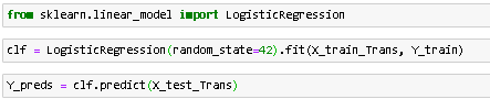 훈련 데이터를 이용해서 Logistic Regression을 학습시킵니다. 그리고 이를 기반으로 해서 테스트 데이터의 결과를 예측합니다.