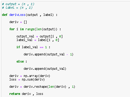 손실함수를 시그모이드 출력값에 대해서 미분한 값을 구하는 함수를 만들었습니다.