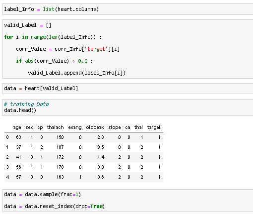 여기서 심장 병의 유무에 관한 데이터인 target을 label로 정하고 나머지는 훈련에 대한 데이터로 이용해보겠습니다.