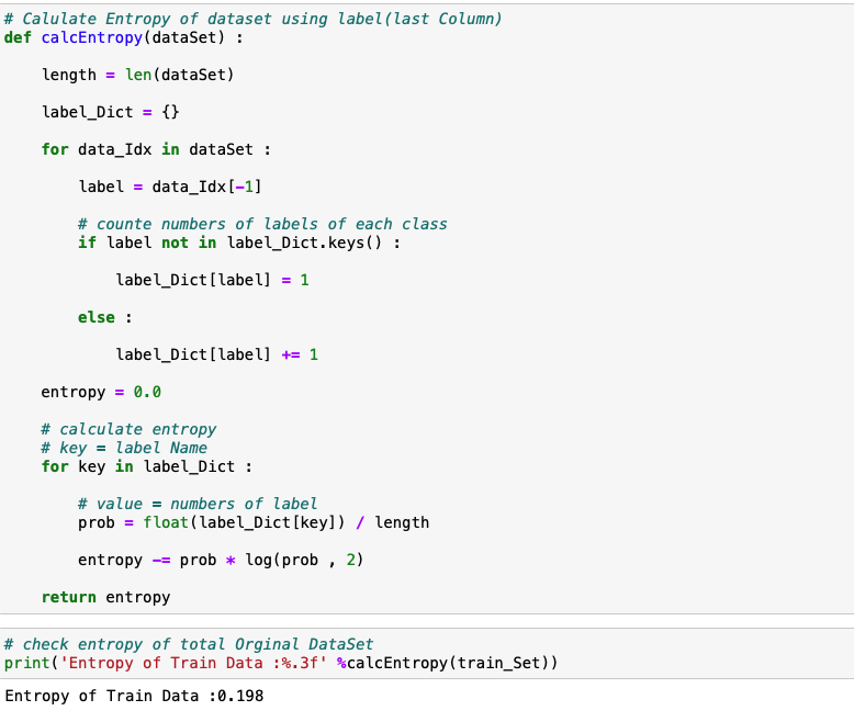 1. 먼저 집합에서의 복잡도 = 엔트로피를 계산하는 함수가 필요합니다.