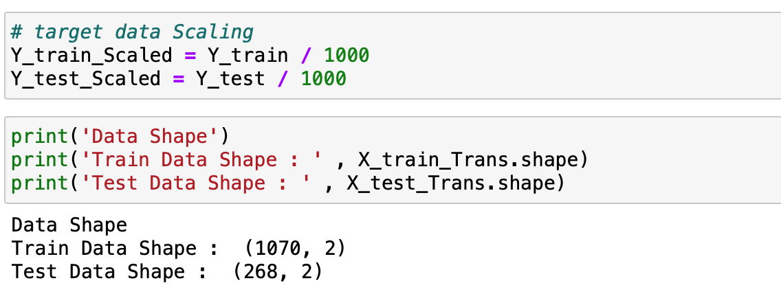그리고 레이블에 해당되는 데이터 값을 1000으로 나누어주어서 전처리를 해줍니다.