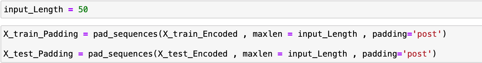 저는 여기서 50이상은 비율이 적다고 판단하여서 정수로된 벡터의 길이를 모두 50으로 맞추어 주었습니다.