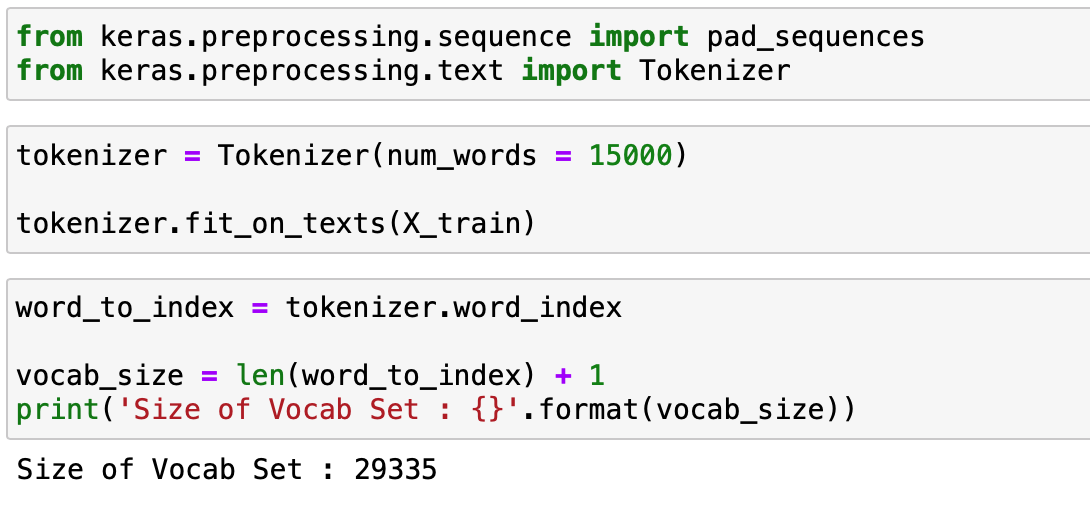 이제 Word List를 Integer List로 변경하기 위해서 즉 정수 인코딩을 위해서 Keras의 Tokenizer를 이용합니다.