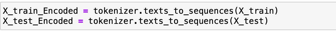 이제 훈련된 tokenizer를 이용해서 훈련 데이터 및 테스트 데이터의 word List를 Integer List로 변경합니다.
