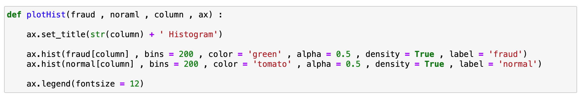 ax가 주어지면 해당 ax에 fraud데이터의 인자로 주어진 속성에 대한 histogram