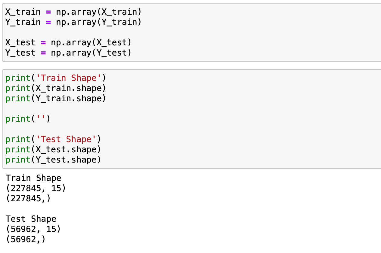 이제 분할된 데이터의 shape을 확인해보겠습니다.