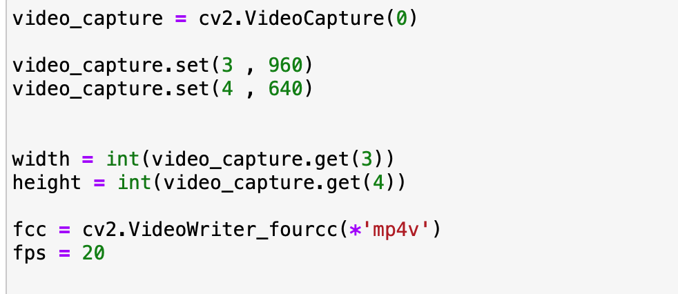 Video_Capture에서의 높이는 960 , 너비는 640으로 지정하고 동영상 촬영을 하면서 사용할 코덱은 mp4v를 이용하였습니다.