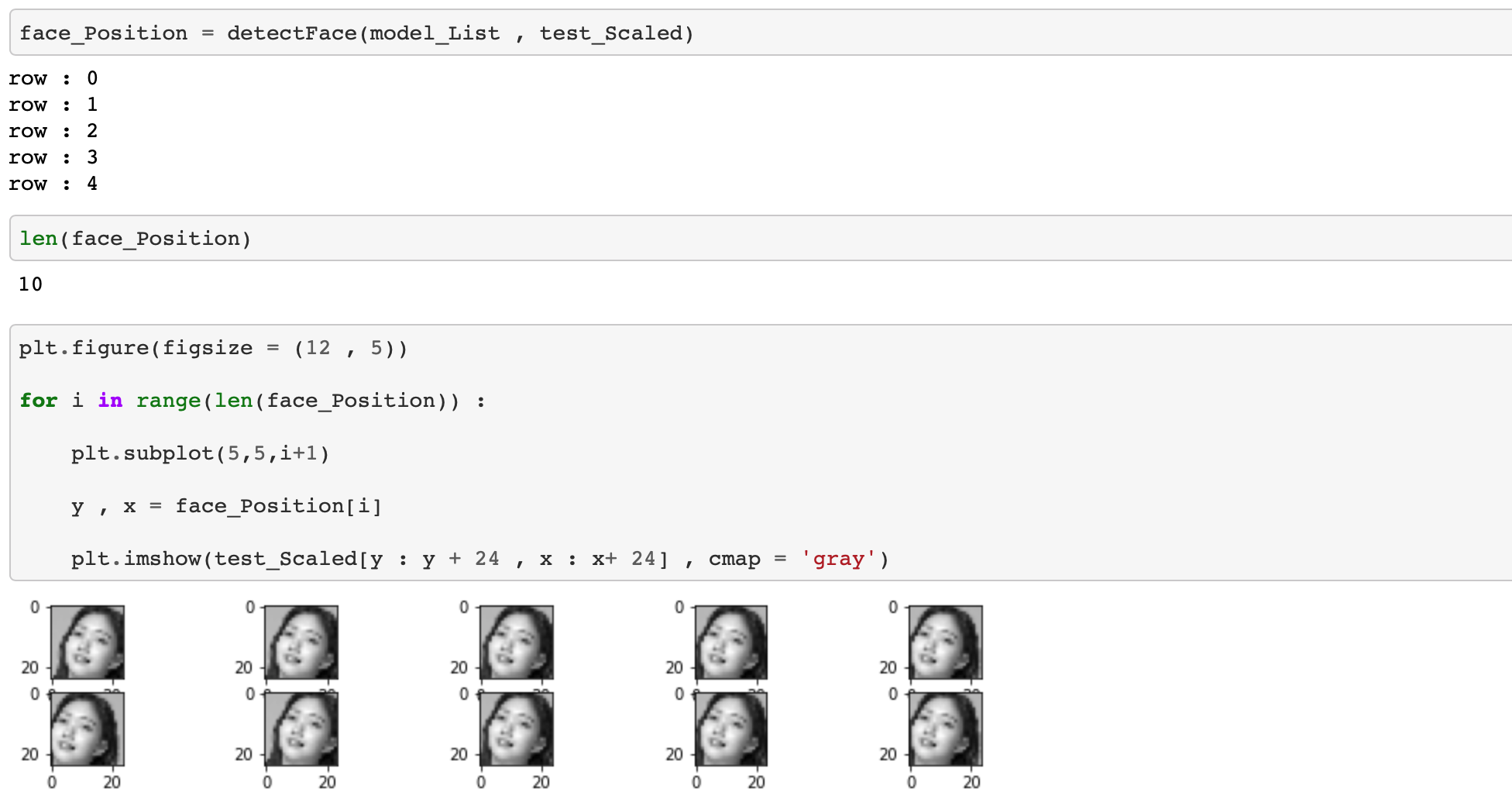 그리고 얼굴이라고 파악이 된다면 해당 행부터 3줄 아래의 행까지만 조사하도록 합니다.