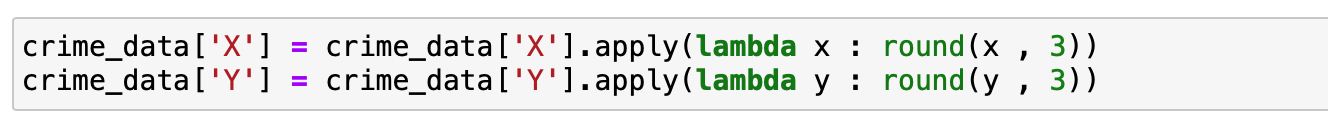 이제 이 간략화된 샌프란시스코 지도에 범죄가 일어난 위치를 시각화하기 위해서 기존 데이터에 X , Y 좌표를 추출하도록 하겠습니다.