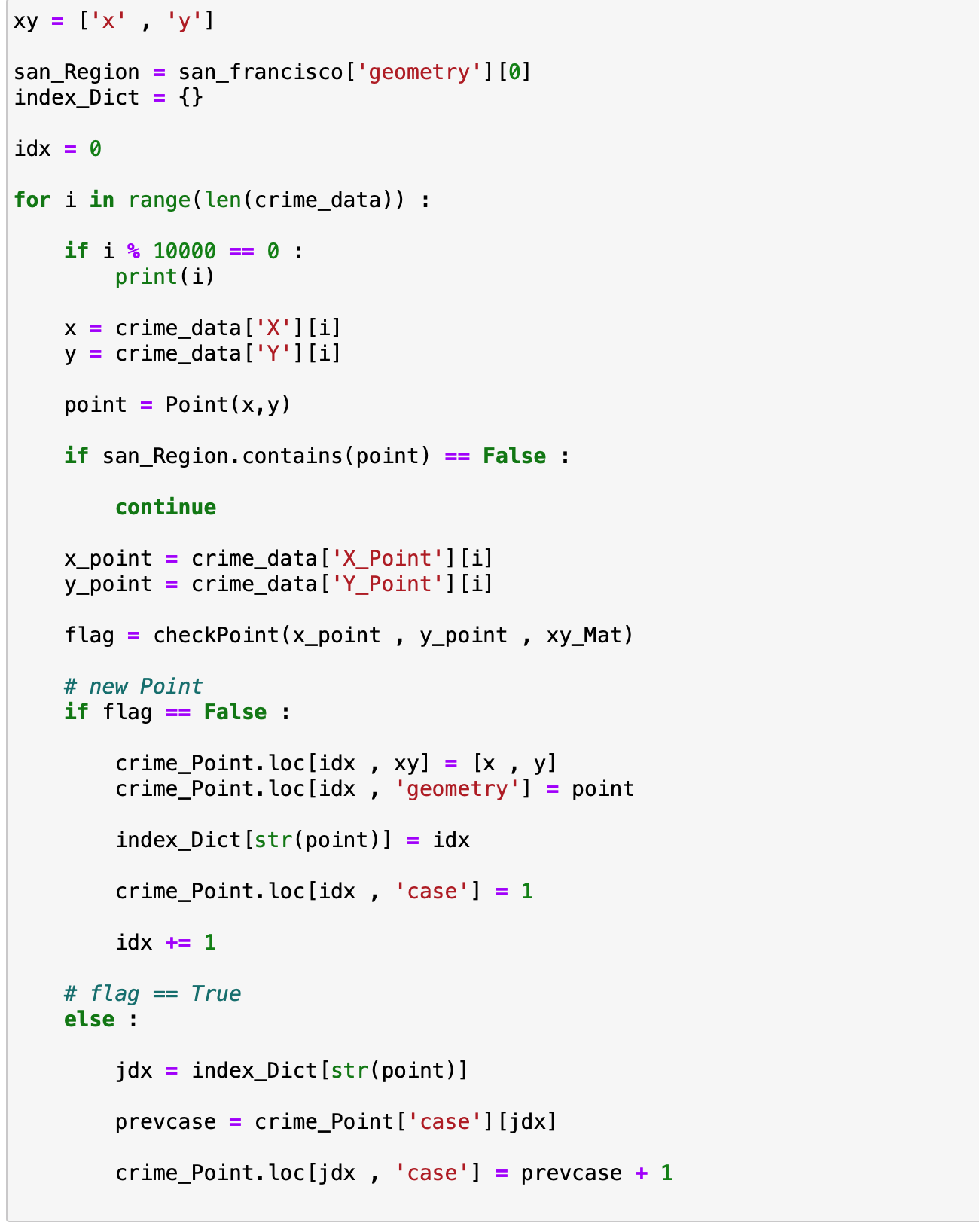 아래는 위 crime_Point GeoDataFrame을 채우는 함수입니다.