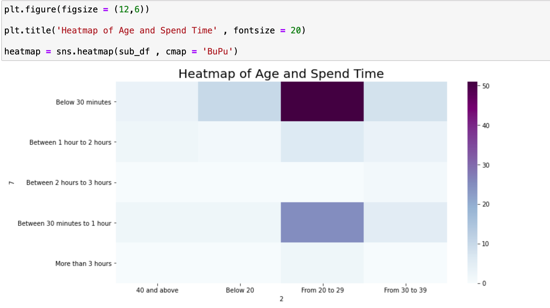 이번에는 스타벅스를 방문하는 고객의 연령대와 스타벅스안에 있는 시간에 대한 두 이산적인 변수에 대해서 seaborn을 이용해서 heatmap을 그려보아서 분석해보곘습니다.