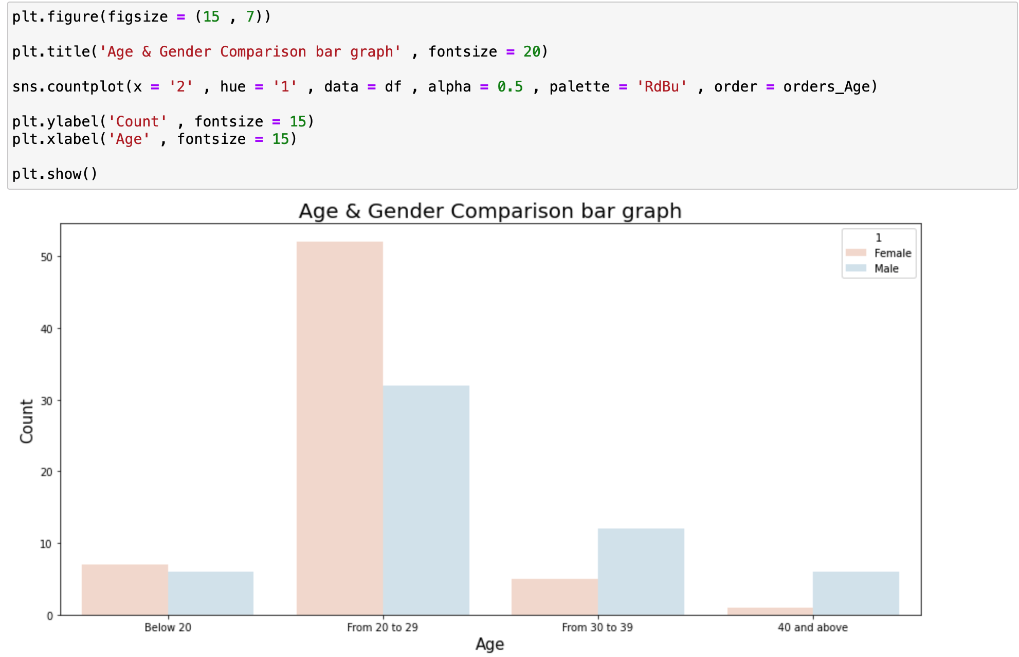 하나의 화면에 성별 속성과 나이 속성을 나누어서 그렸으며 핵심 코드는 아래와 같습니다.