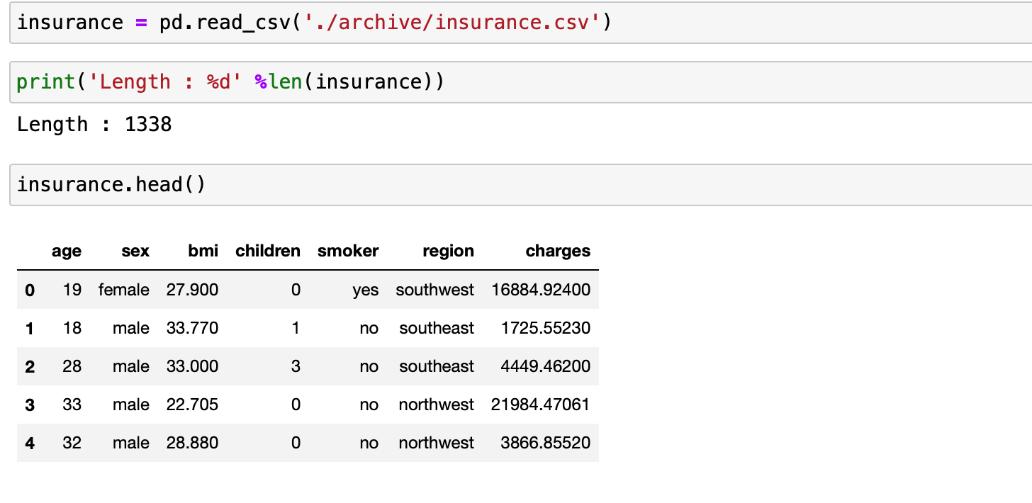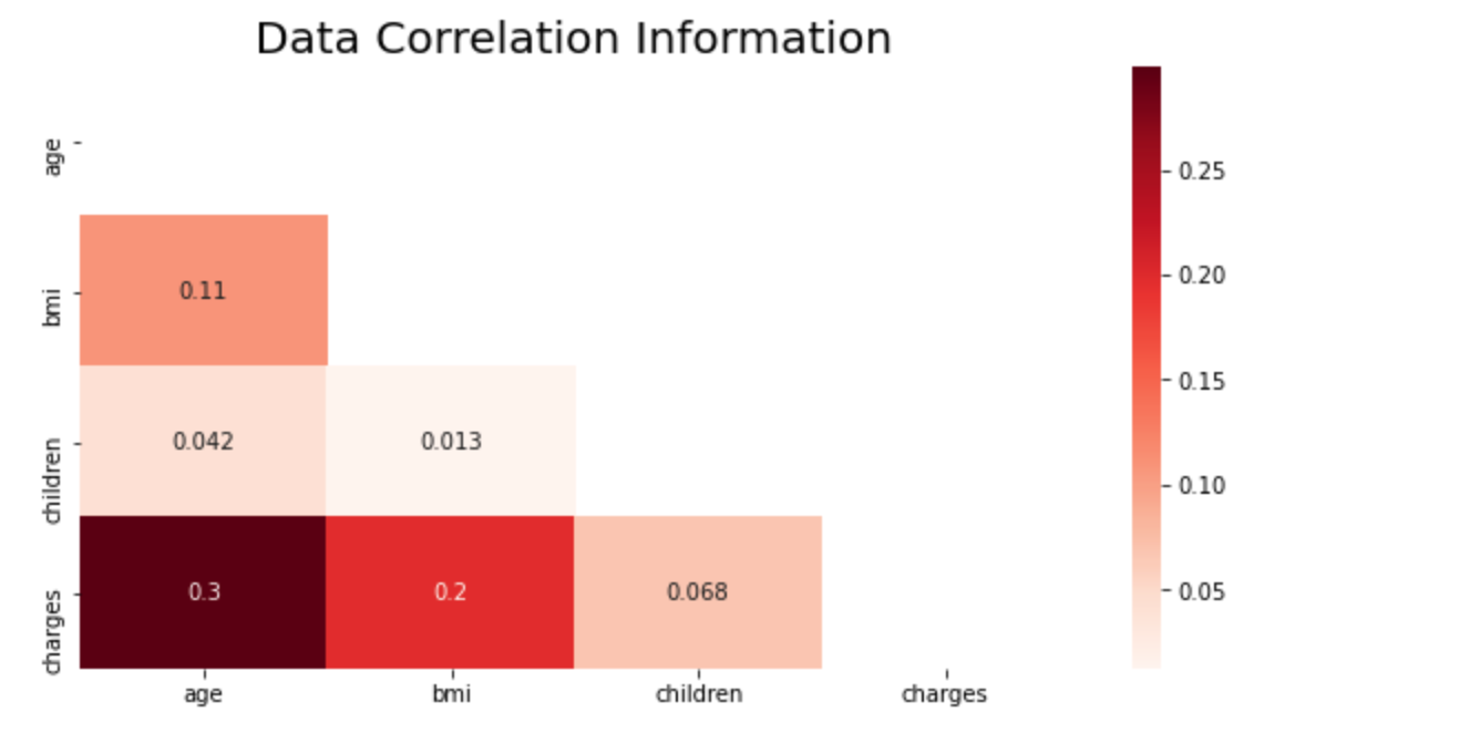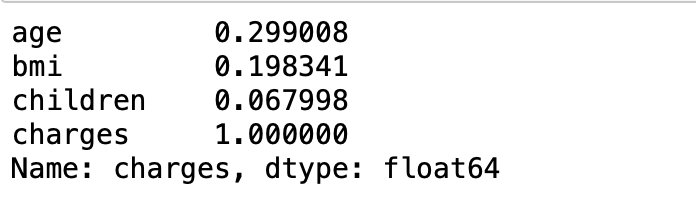수치로 따지자면 age, bmi , children과 같은 순서로 charges 와 연관이 된다는 것을 확인할 수 있습니다.