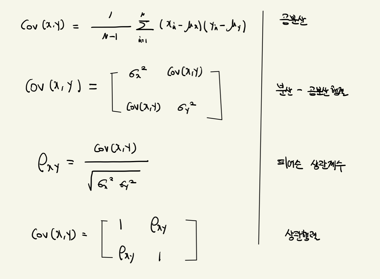 상관행렬에 대한 이론을 간단하게 정리하자면 아래와 같습니다.