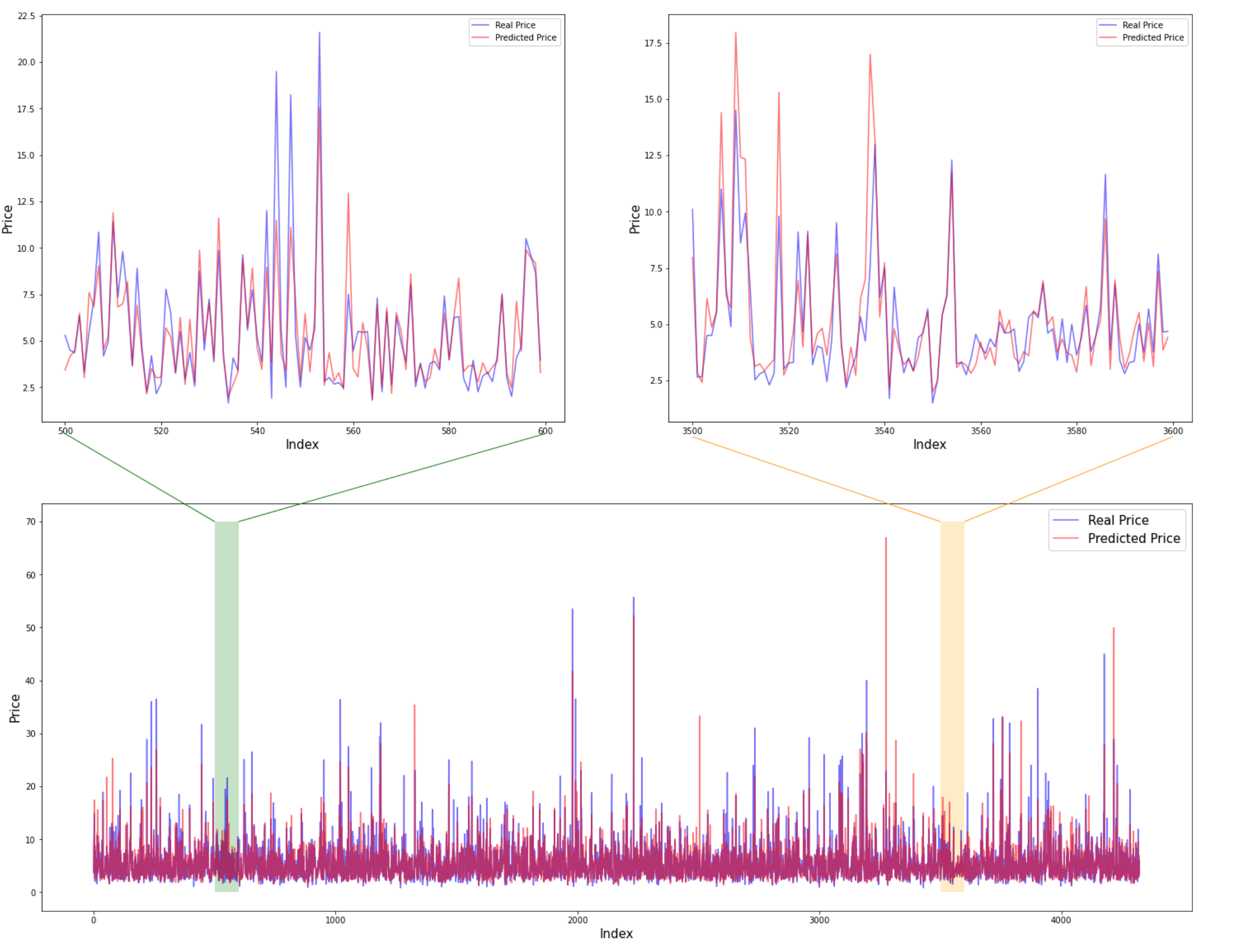 bottom.plot(idx_List , Y_test , color = 'blue' , alpha=0.5 , label = 'Real Price')