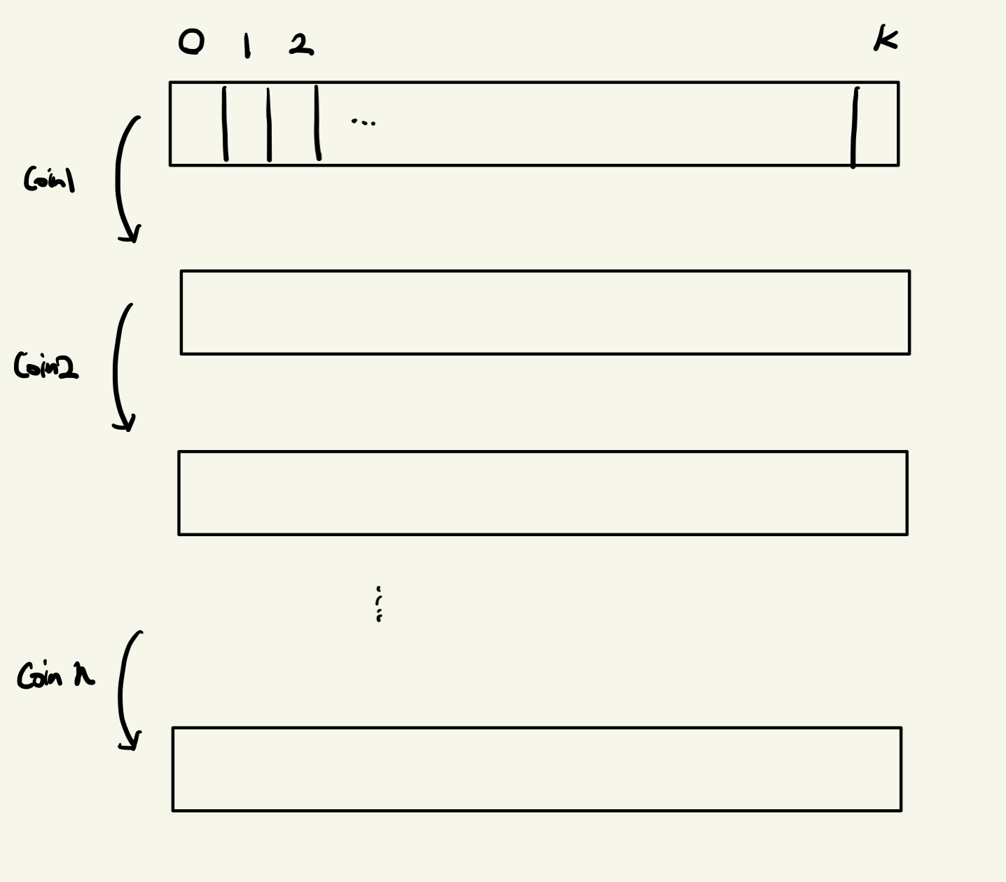 정리하자면 각각의 코인을 이용해서 만들 수 있는 경우를 계산한는데 다음 코인의 경우를 파악할 때는 이전 경우에서 시작함으로써 코인들의 조합들도 알아서 따질 수 있도록 해줍니다.