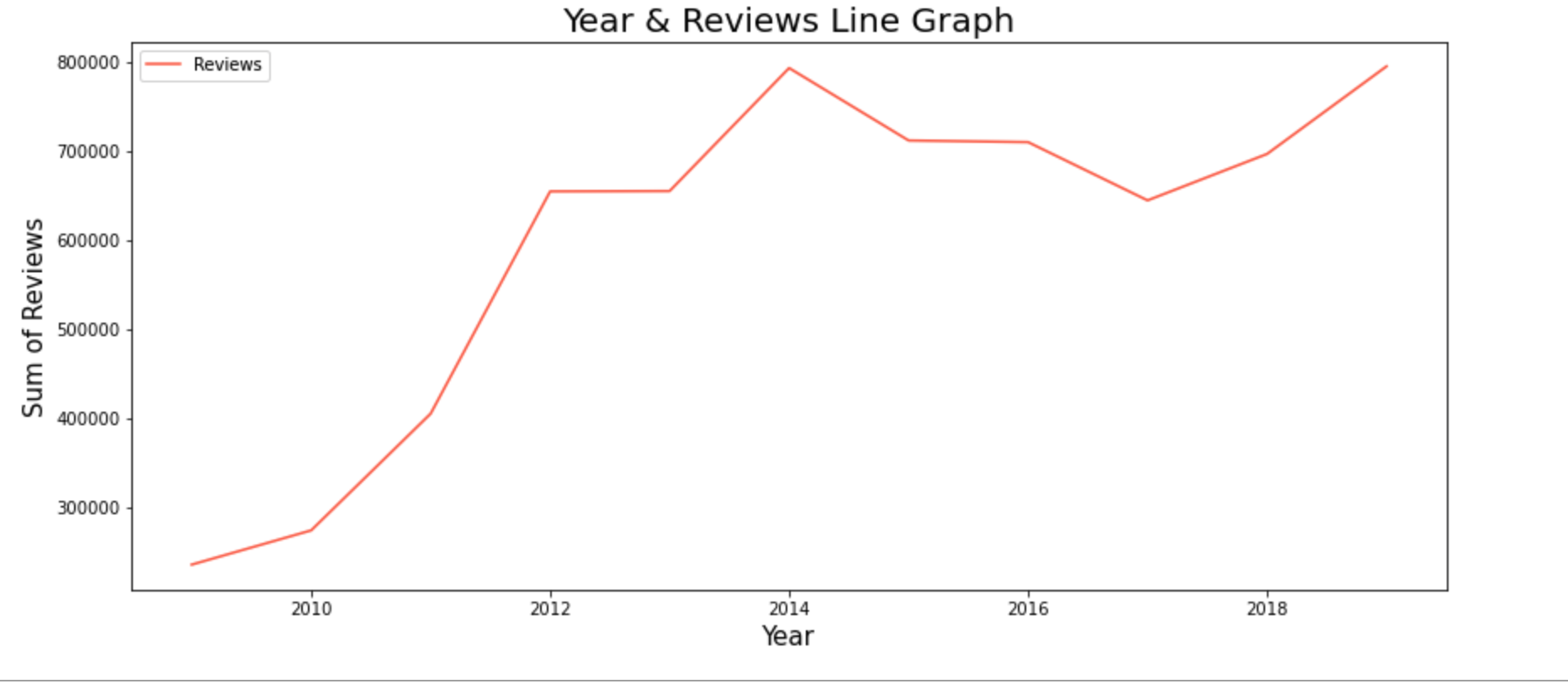 year_Reviews = df.groupby('Year').sum()['Reviews']