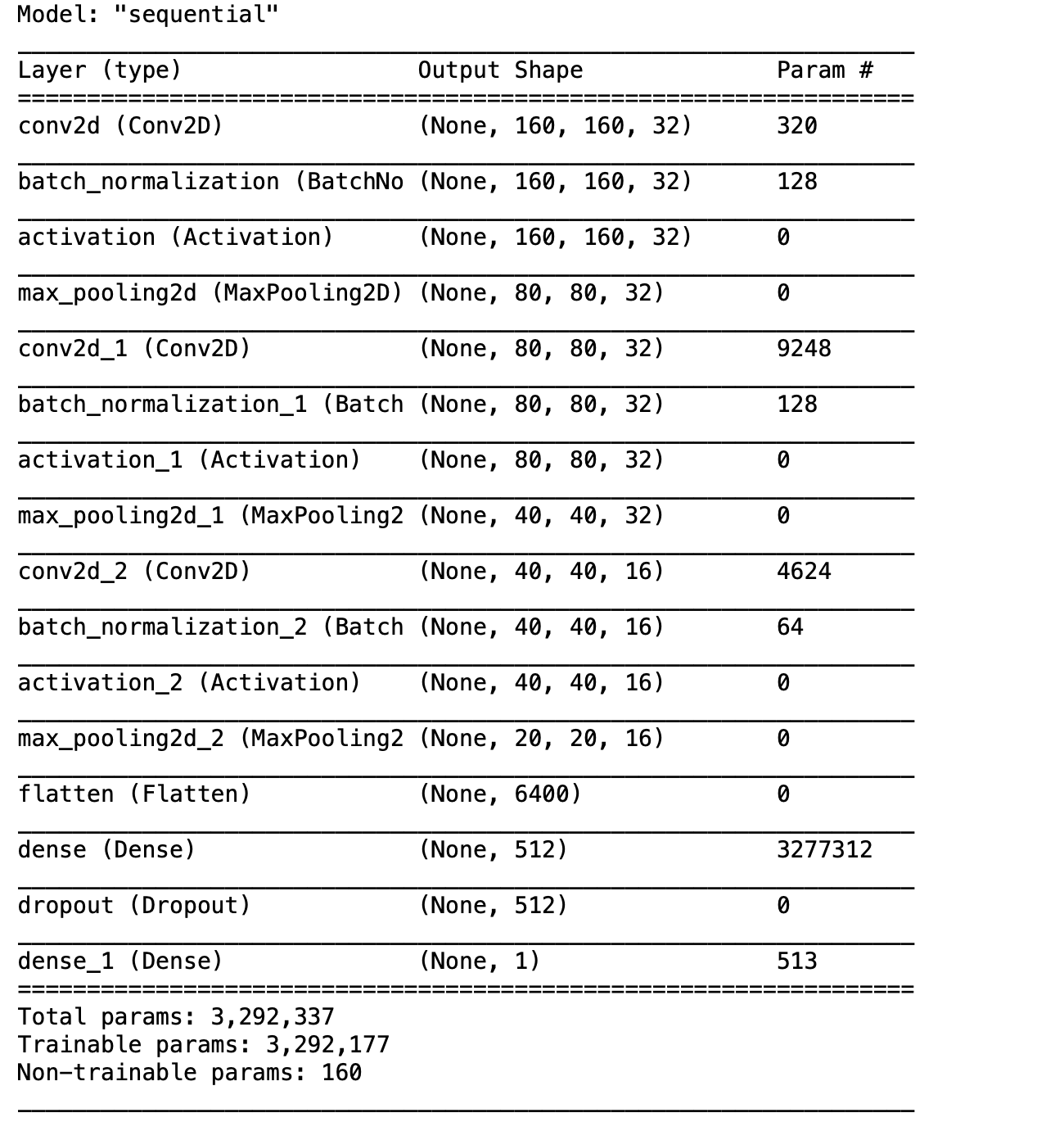 이제 여기서 Fully Connected Layer를 추가해주는데 이진 분류이므로 마지막의 활성화 함수는 Sigmoid 함수로 설정합니다.