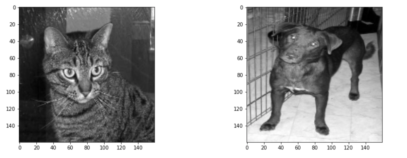 그리고 불러온 이미지를 한 장씩 불러와서 고양이 사진과 강아지 사진을 비교해보겠습니다.