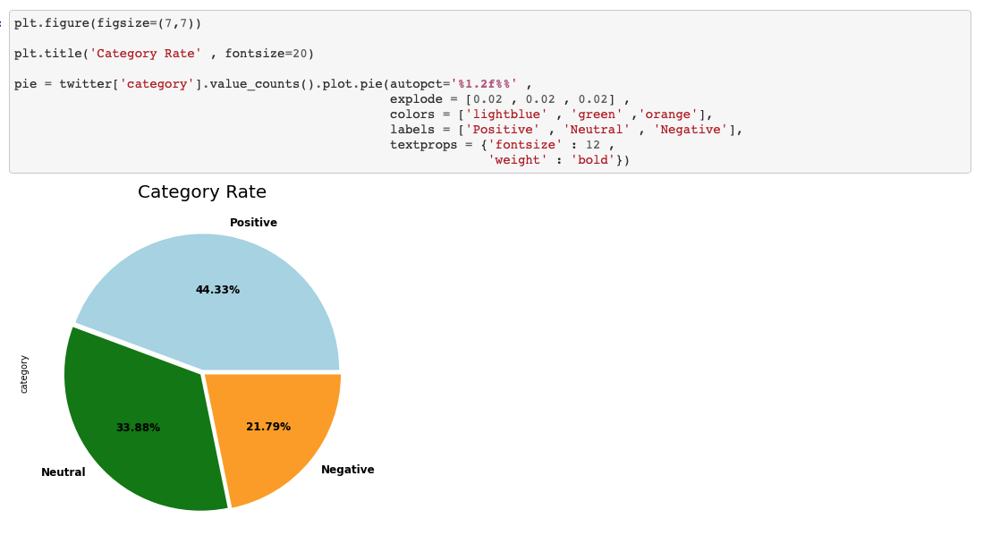 긍정이 가장 많았고 그 다음은 중립이 많았습니다. 부정은 전체 데이터의 21% 정도를 차지하는 것을 확인할 수 있습니다.