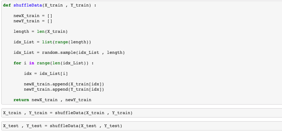 훈련 및 테스트 데이터가 긍정 a개 , 중립 b개 , 부정 c개 가 섞이지 않고 순서대로 들어있으니 Deep Learning 학습을 위해서 데이터의 순서를 셔플합니다.