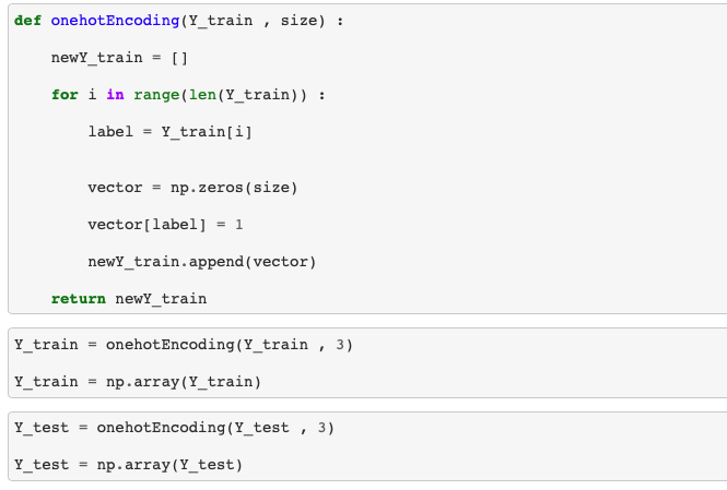 이제 0 , 1, 2로 인코딩 했던 label들을 one hot 인코딩을 해줍니다.